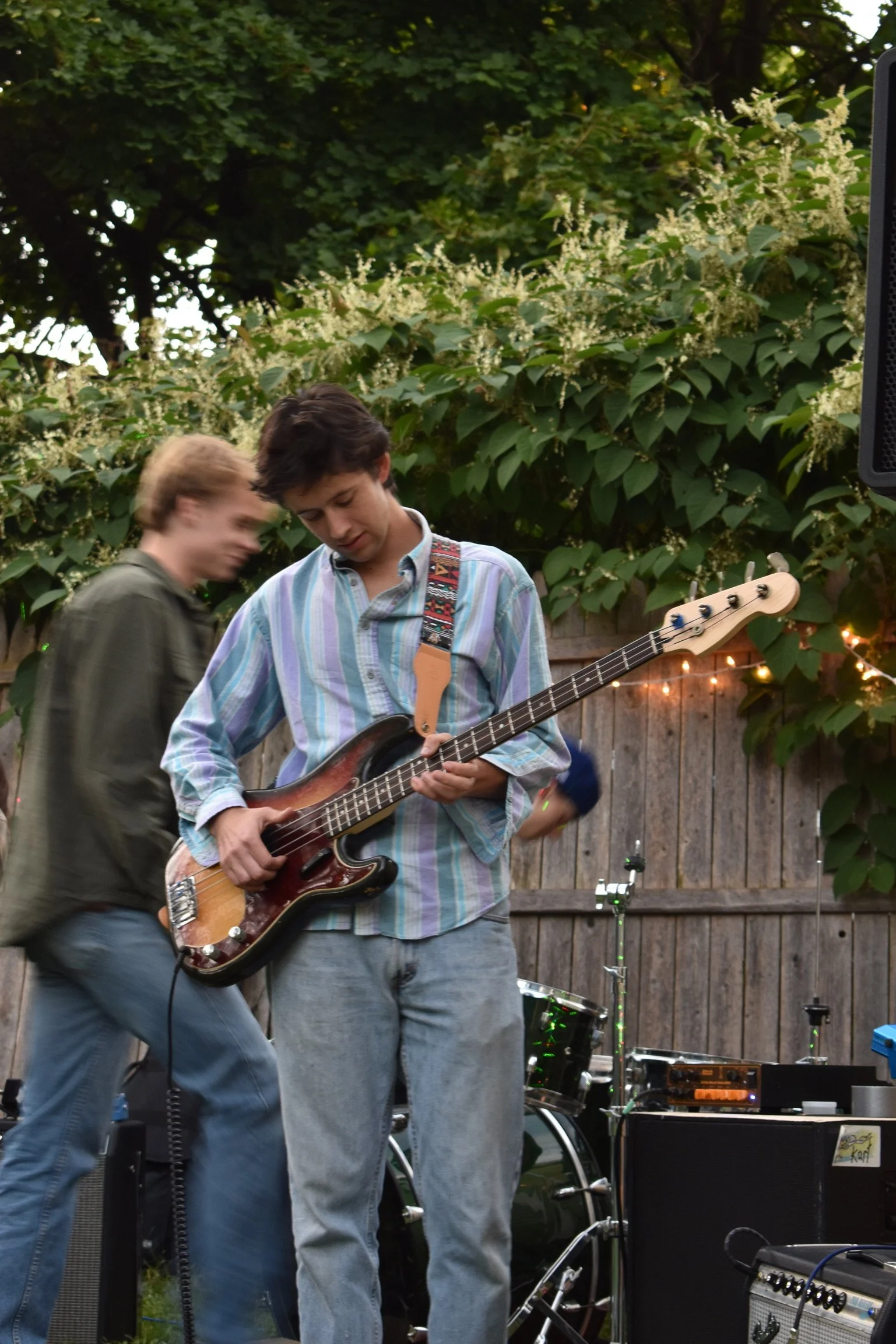 Alisdair plays the drums for Cows on the Moon. He’s from Vermont, studies music, and enjoys playing piano and writing charts. His favorite artists include but are not limited to The Strokes, Anderson Paak, MF DOOM, Chet Baker, and Paul Simon. He also enjoys cooking, skiing, being outside, and seeing live music of course. His favorite cover to play with Cows is The Chain by Fleetwood Mac, and his favorite original is Anything.